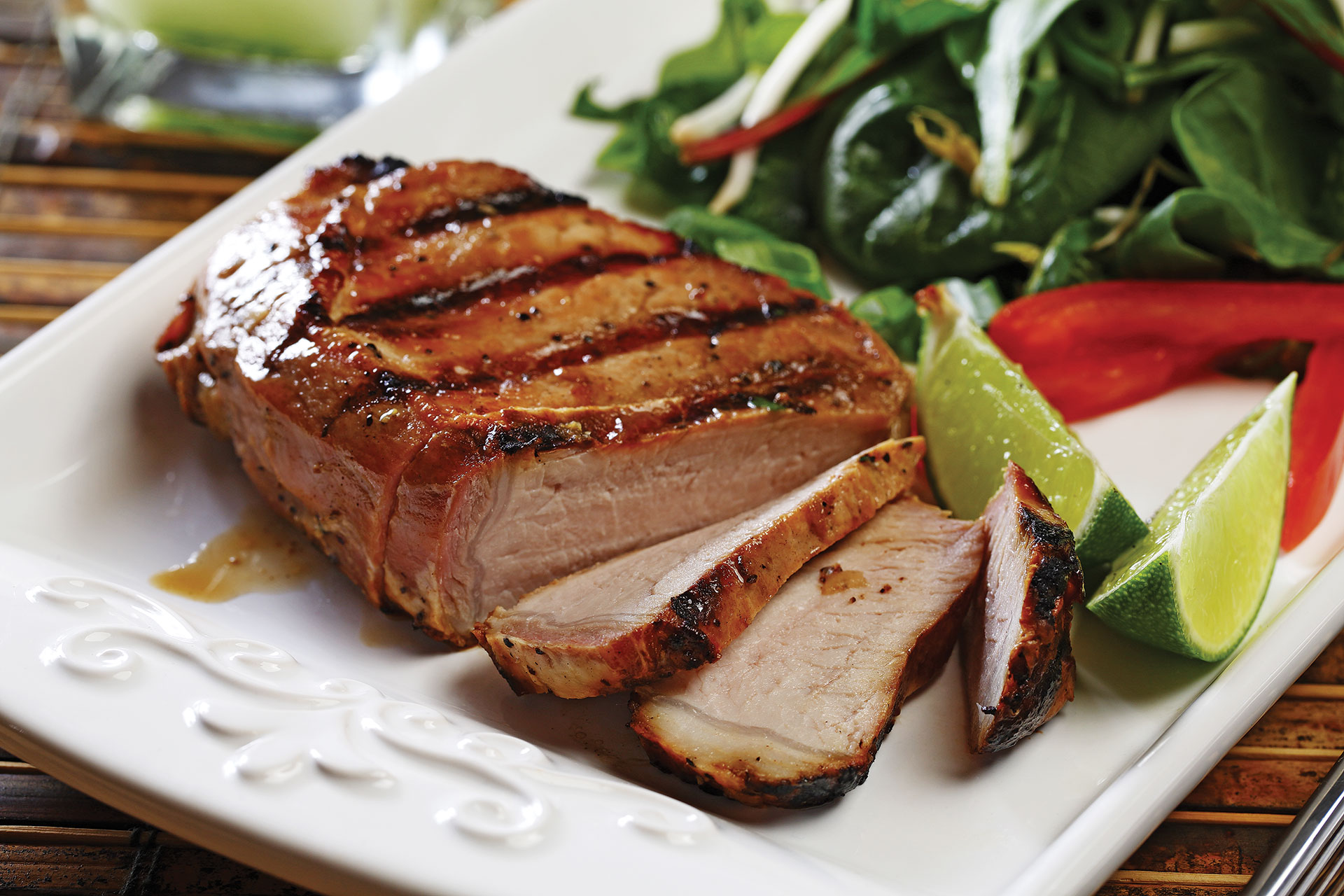 This summery dish is perfect for any backyard get together. Marinade the chops prior to grilling on the barbecue to seal in the flavour. Finely chop a jalapeño pepper to add some summer heat to your salad!