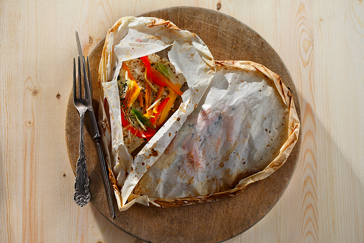This recipe is a time saver. Your main course and vegetables all get cooked in one neat package wrapped in papillote. The recipe calls for sole fillets but works with any white fish.