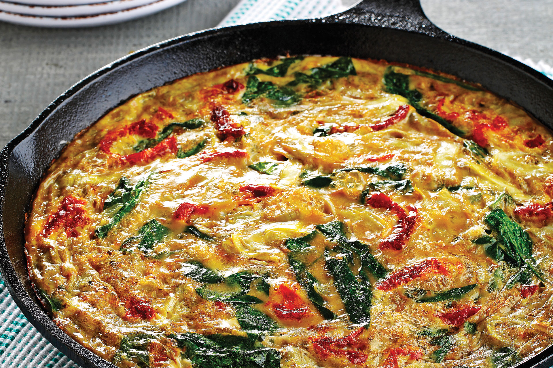 This combination of flavours is classic and this method for cooking a large frittata works with any number of substitutes. Swap out the artichokes and sun-dried tomatoes for chorizo and mushrooms or a favourite combo of seasonal vegetables. It truly can be a choose your own adventure! Recipe courtesy of howtoeat.ca.