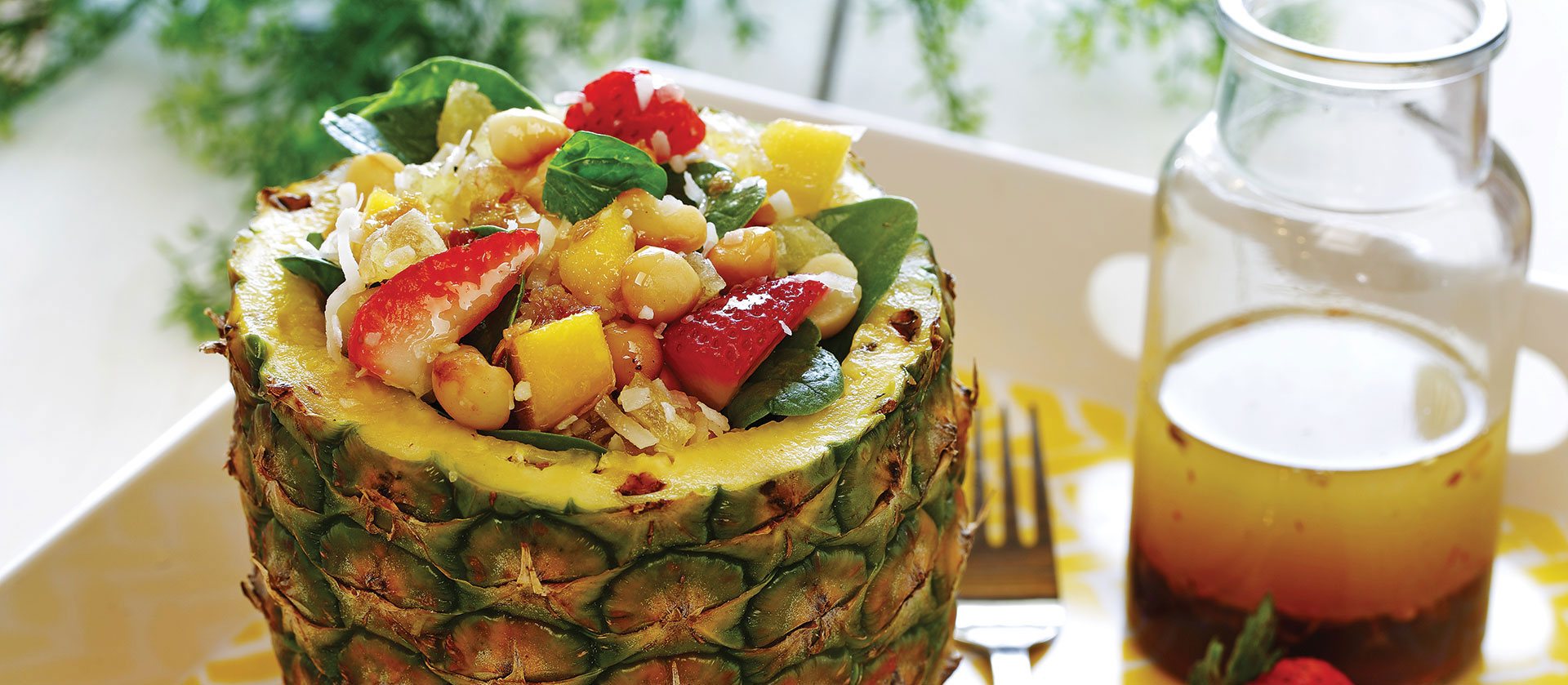 Tropical Salad with Macadamia Nuts, Toasted Coconut & Huli Huli Dressing